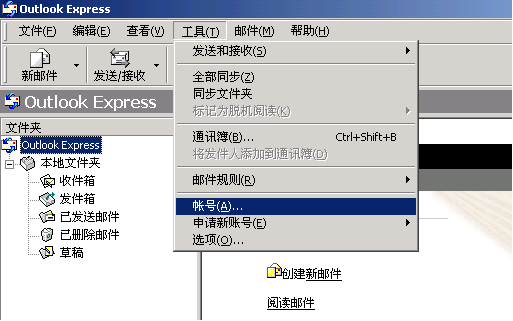 如果您使用Outlook Express软件来收发Email的话,请按如下步骤做(以OutLook5.0版本为例)。 1、添加帐号 2、添加邮件帐号 3、显示姓名 设置您的姓名,或者由您随意。 4、添加邮件地址 填写您的Email地址,如:xxx@abc.com。这里的xxx@abc.com应该是您的用户名@您的域名。 5、设置邮件服务器地址 6、设置帐号和密码 注意:帐号一定要填写“用户名@您的域名”(即您的E-mail地址)格式。密码您也可以暂时不输入,这样在以后每次收发信件的时候会提示密码。如果您是在公用计算机上是使用,为安全起见,建议不要输入密码。 7、设置SMTP选项 点击完成后,您还需要设置SMTP选项。请选中点击您刚才开设的帐号,然后点击"属性">>选择"服务器">>将"我的服务器要求身份验证"打勾>>"确定"。 否则,您将不能正常发送信件。 设置完成